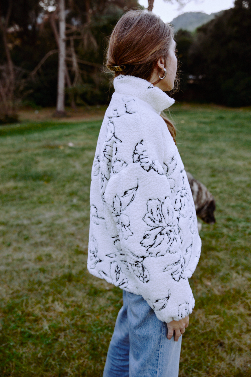 Jersey de tejido de punto de borreguito bordado con bonitas flores.